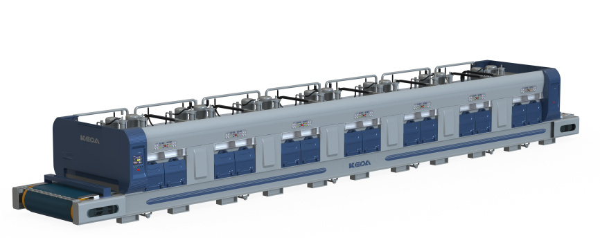 窯爐采用的是科達(dá)極光系列高效節(jié)能寬體輥道窯(YG3.1m/466.2M-Q),應(yīng)用了助燃風(fēng)加熱系統(tǒng)、助燃分組精準(zhǔn)控制系統(tǒng)、窯體綜合保溫升級系統(tǒng)、高效節(jié)能窯爐噴槍,輔以科達(dá)V3.0 窯爐智能控制系統(tǒng),為該線樹立在產(chǎn)量、能耗、穩(wěn)定性及智能控制等方面優(yōu)勢提供了充足保障。